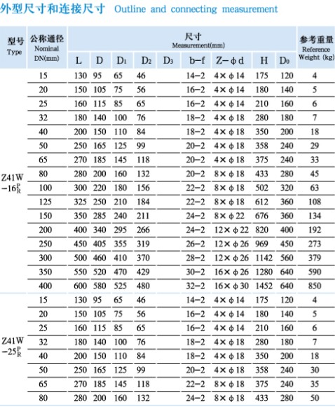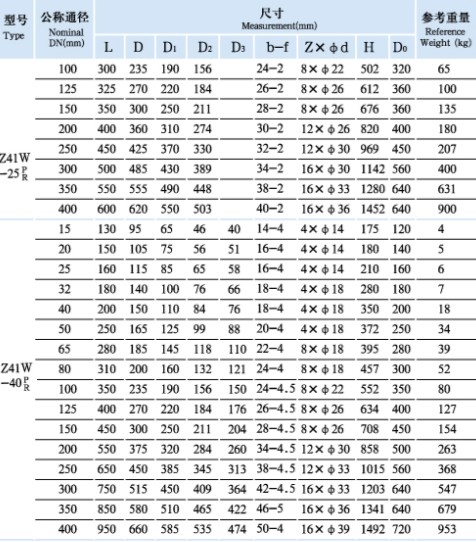 Z41W-16P/R 25P/R 40P/R stainless steel gate valve