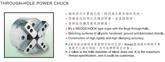 1.It's a wedge-hook type 4-jaw with the large through-hole.